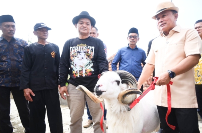Kuningan, – Disela kunjungan ke kelompok Peternak di Desa Karangsari, Kecamatan Darma pada Jumat pagi (19/09/2025) Bupati Kuningan memberikan support kepada kelompok ternak Budak Angon yang memiliki sebuah domba istimewa yang akan berlaga di Final Seni Ketangkasan Domba Garut Piala Presiden.
