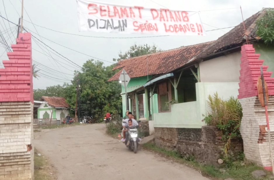 Warga pun menunjukan sikap marah dan ekspresinya melalui pemasangan puluhan spanduk dengan beragam kalimat kecaman di sepanjang jalan rusak. Isinya menohok!