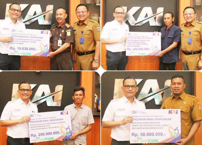 KAI Daop 3 Cirebon menyerahkan bantuan Bina Lingkungan dengan total nilai Rp 469.038.000,- kepada 4 penerima bantuan dari Kota Cirebon, Kabupaten Cirebon dan Kabupaten Indramayu.