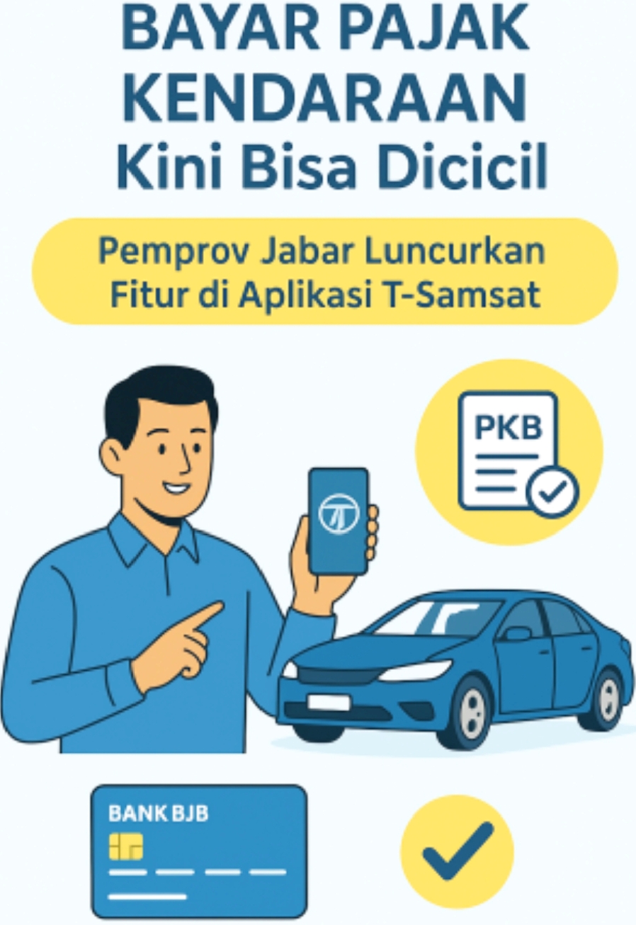 Bandung, – Kabar baik bagi masyarakat Jawa Barat. Kini, pembayaran pajak kendaraan bermotor baik roda dua maupun roda empat bisa dilakukan dengan skema cicilan melalui aplikasi T-Samsat.