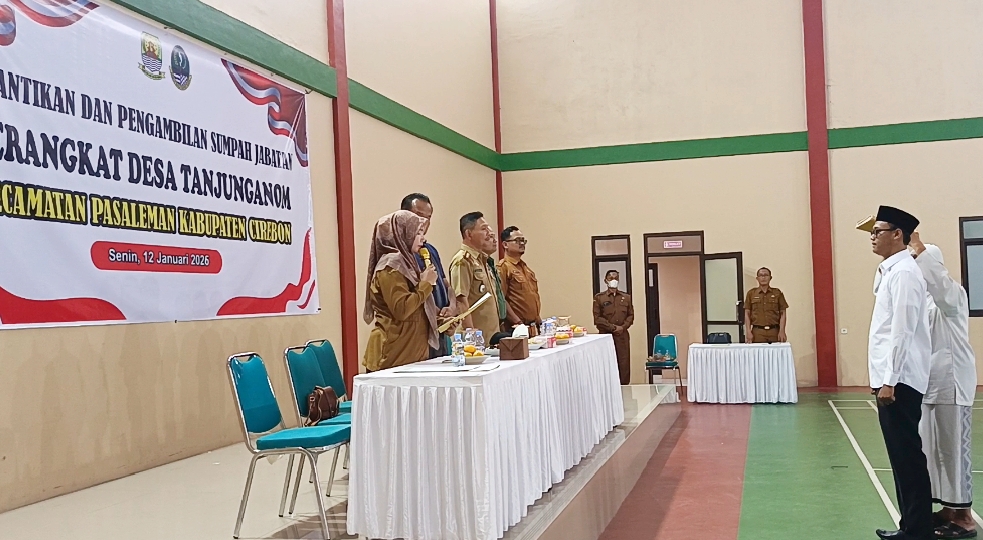Kabupaten Cirebon, – Bertempat di Gedung Serba Guna Pemerintah Desa Tanjung Anom Kecamatan Pesaleman telah melaksanakan Pengambilan Sumpah Jabatan dan Pelantikan Perangkat Desa baru dengan jabatan Kepala Seksi Pemerintahan dengan pengabdian selama tiga tahun dengan kinerja baik.