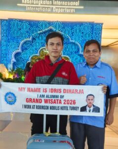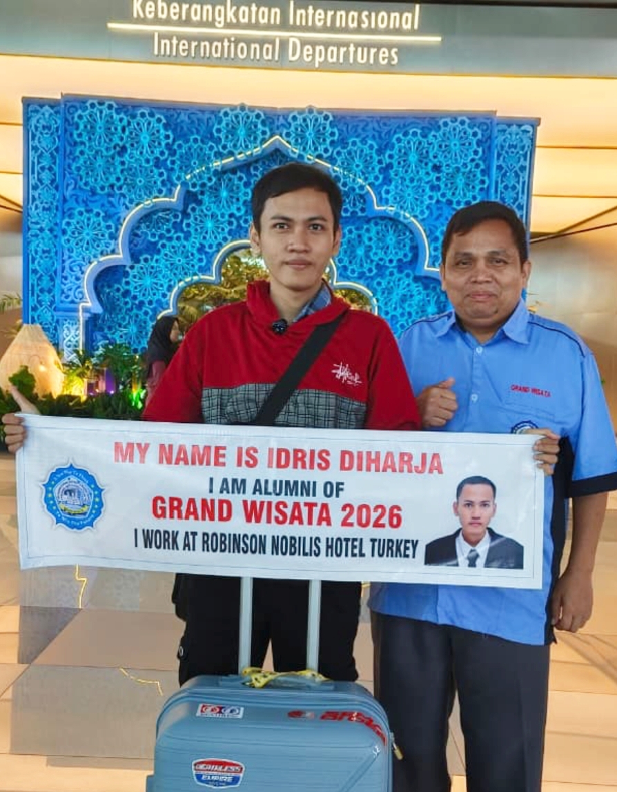 “Keberangkatan Saudara Idris Diharja dan Saudara Mayakup menjadi bukti nyata bahwa alumni LKP/LPK Grand Wisata mampu bersaing dan dipercaya oleh industri perhotelan internasional. Ini juga menjadi motivasi bagi alumni lainnya untuk terus meningkatkan kompetensi dan kesiapan diri,” ujarnya. (25/3/2026).