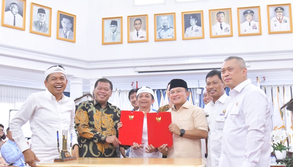 Bandung – Wali Kota Cirebon, Effendi Edo, hadir dalam penandatanganan Nota Kesepakatan Pengembangan Transportasi di Jawa Barat yang berlangsung di Gedung Pakuan, Bandung, Jumat (10/10/2025). Pemerintah Kota Cirebon menyatakan dukungan penuh terhadap inisiatif ini, yang diharapkan dapat memperkuat konektivitas wilayah.