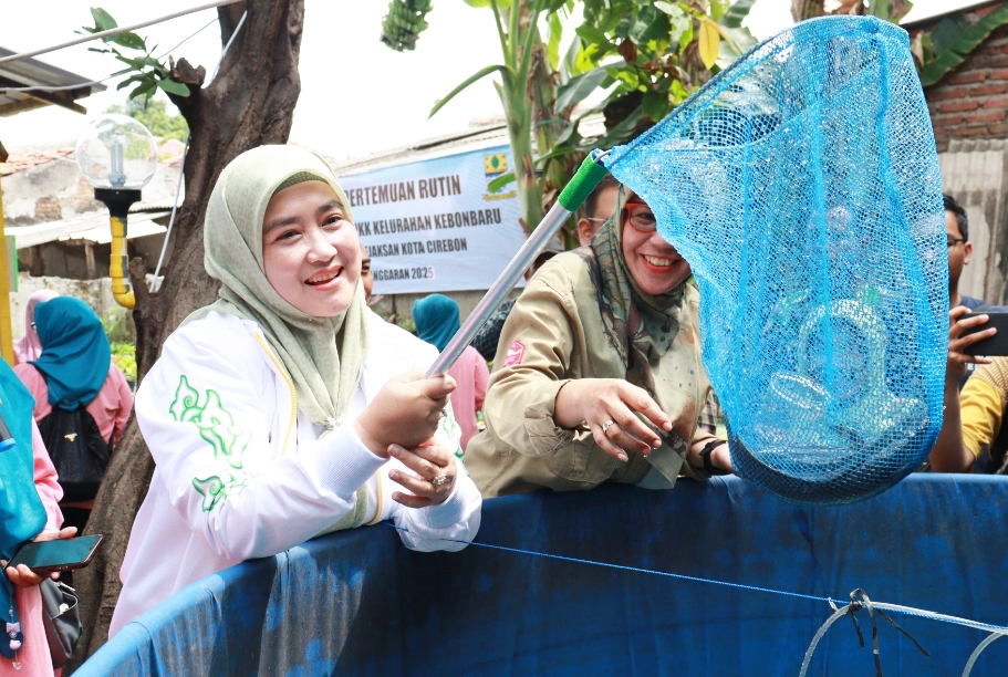 Wakil Wali Kota Cirebon, Siti Farida Rosmawati, hadir untuk menyaksikan panen ikan lele di lokasi tersebut, Jumat (31/10/2025).